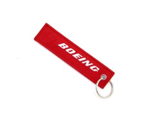 Boeing Keychain : Measures approx. 5.5 Embroidered lettering Made by Apex Imports Red and White stitching High quality Cotton canvas Boeing Keychain which has ‘FLIGHT CREW” on opposite side looks very creative and unique gift.