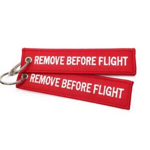 Remove Before Flight Keychain Now you can buy online “Remove Before Flight Keychain” Double-sided embroidered fabric keychain ( Remove Before Flight ) Metallic ring with bright shine Outer Material: Polyester, Inner Material: Fabric; Shell Type: Soft Color: Red; Product Dimensions (W x H): 3 cm x 13 cm List of Included Items: 1 Key Chain…