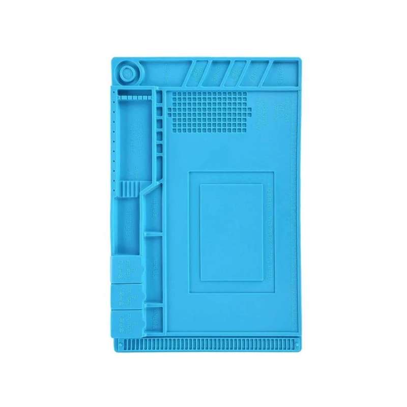 Make your repair work easy with ESD S-160 Anti Static Magnetic Heat Insulation Workbench Mat. Heat-resistant BGA Soldering Station Repair Insulator Pad Maintenance Platform for BGA Repair. Â It has High-temperature resistance of 500 degrees C, Non-toxic, Heat-trapping, anti-skidding, productivity improvement. Different hole locations to set screws, IC chips, and small parts. A good partner for hot air tool used to repair mobile phones, tablets, computers. This is Silicone Insulation Pad, Can cotton swab with the thinner / PCB cleaning water, Thermostable, anti-corrosive. For maintenance platform, for Soldering Stations, for Laminating machine, for Remover Bubble machine.